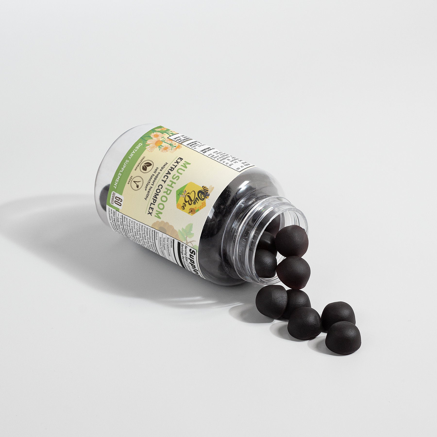 Our Mushroom Extract Complex Gummies combine the most sought-after mushrooms in the world: Maitake, Shiitake, Lion's Mane, Reishi, Cordyceps, Chaga, Turkey Tail, White Button Mushroom, Black Fungus, and Royal Sun Mushrooms.